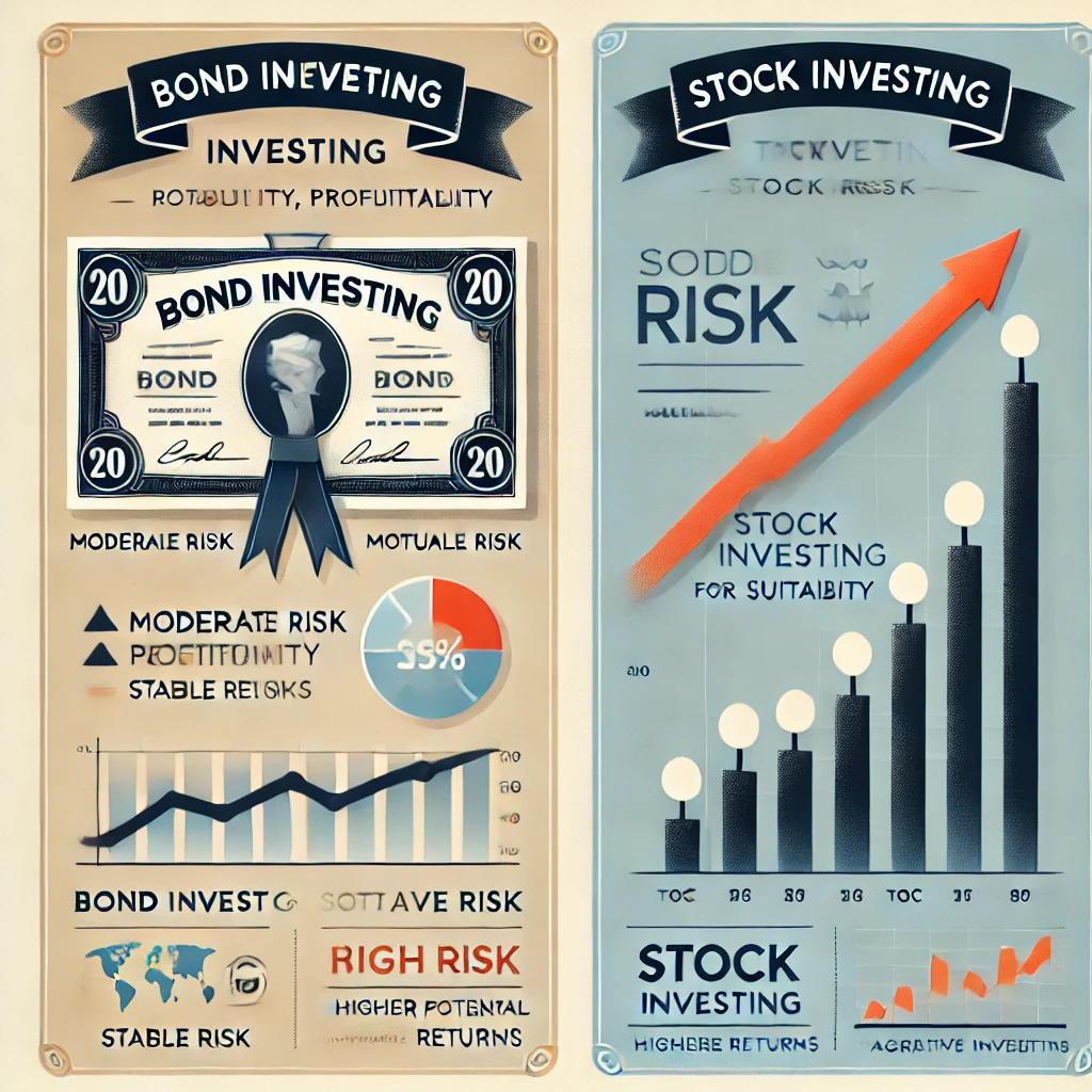 따라서, 채권은 안정적인 수익을 추구하는 투자자에게 적합하며, 주식은 더 높은 수익률을 기대하며 리스크를 감수할 수 있는 투자자에게 적합합니다.